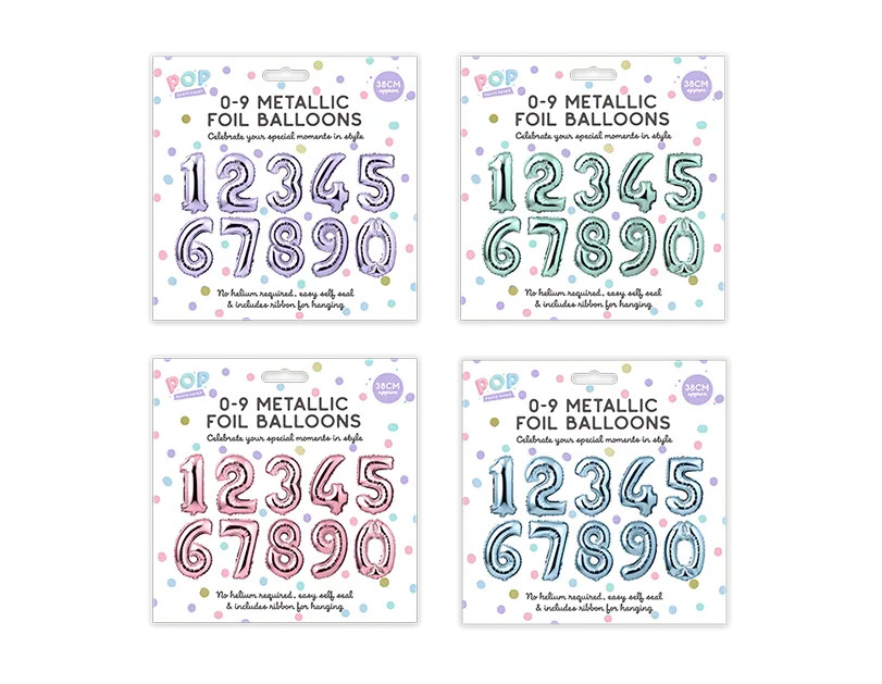 Each pack contains 10 individual balloons, each number from 0 to 9, with a durable foil construction containing no latex, and measuring H38cm approx when inflated.