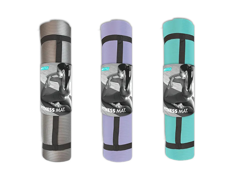 Each fitness mat measures L183 x W61cm with an 8mm thickness, features a textured non-slip surface. Mats are light weight and durable and dry quickly, and comes with an elastric roll strap for storage and carrying purposes.