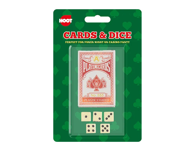 Card and dice pack perfect for poker nights or casino parties.