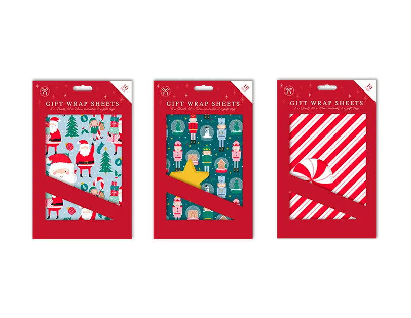 Each set contains five individual sheets measuring 50 x 70cm, and five matching gift tags, complete with string to attach to the gift.