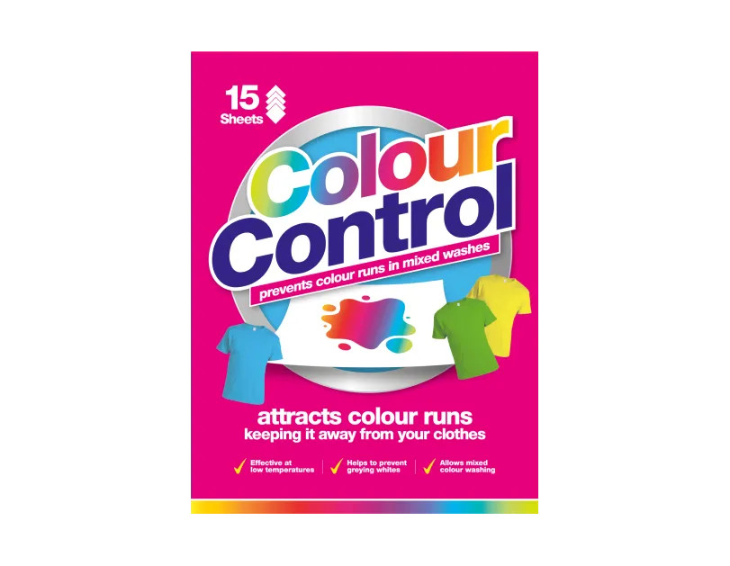 This pack of Colour Control Laundry Sheets contains fifteen sheets that attract colour runs during mixed washing loads.