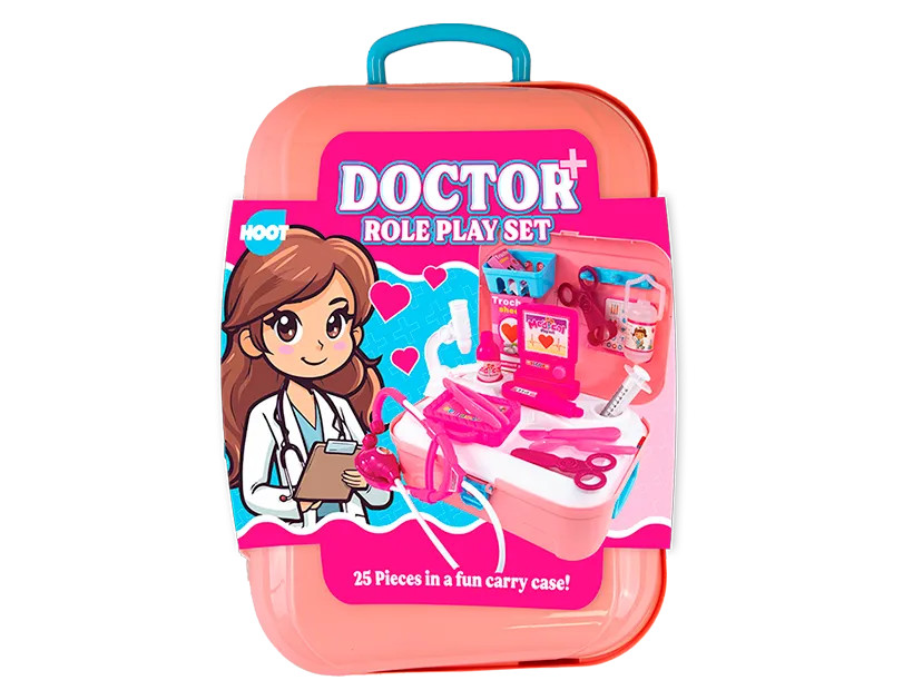 Each set comes with 25 individual pieces including stethoscopes, syringes, bandages and more, crafted from child safe materials and encouraging hours of hands-on role play that supports social development and creative story telling.