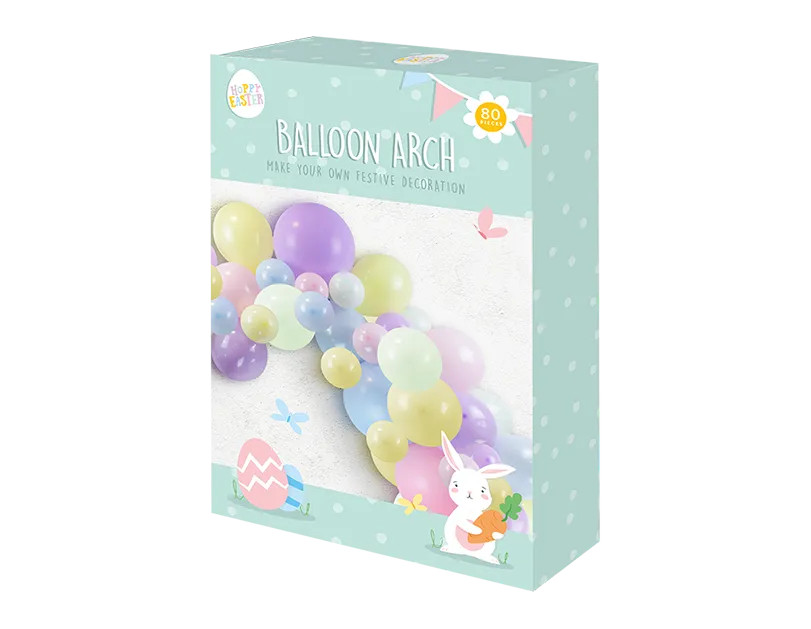 A great DIY Easter balloon arch kit, containing 80 pieces that when combined together create a beautiful pastel-coloured arch. Ideal for easter aprties and displays.