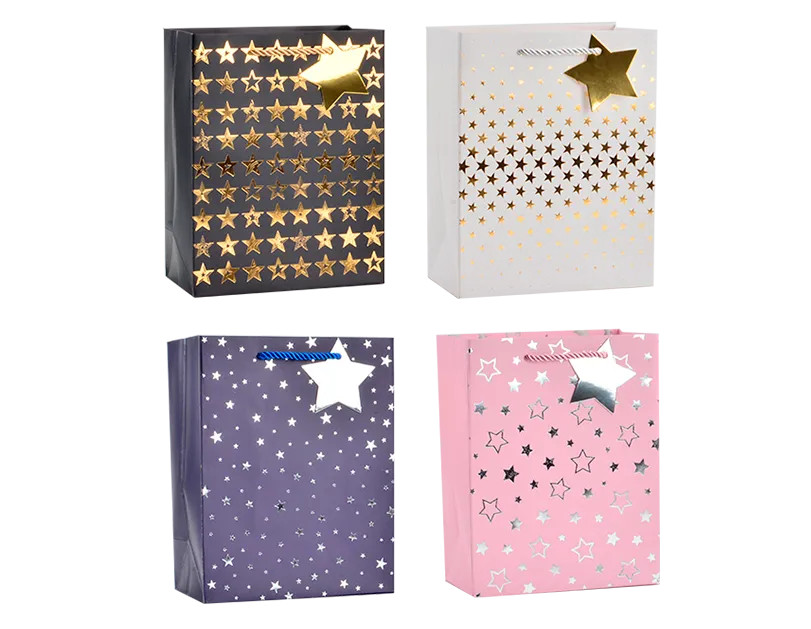 These medium gift bags feature beautiful star designs with shiny silver and gold foil details and are ideal for presenting gifts in for a large range of parties and celebrations.