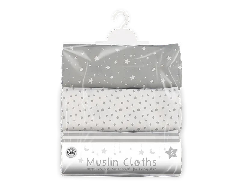 Each pack comes with three individual cloths, each with a different pattern. Each cloth is made from 100% cotton, and measures L60 x W60cm.