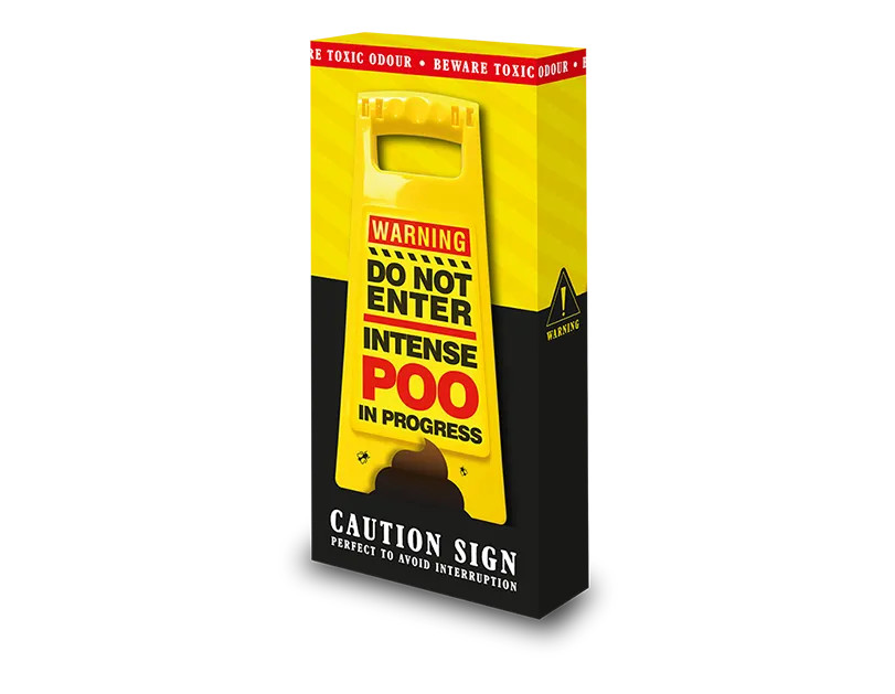 Warning! Do not enter! Use this caution sign to avoid interruption whilst in the bathroom and let everyone know it is occupied. Each sign measures L24.5 x W11.5cm, with an open depth of 9cm, and is constructed from plastic with "Warning. Do not enter. Intense poo in progress" print on both sides.
