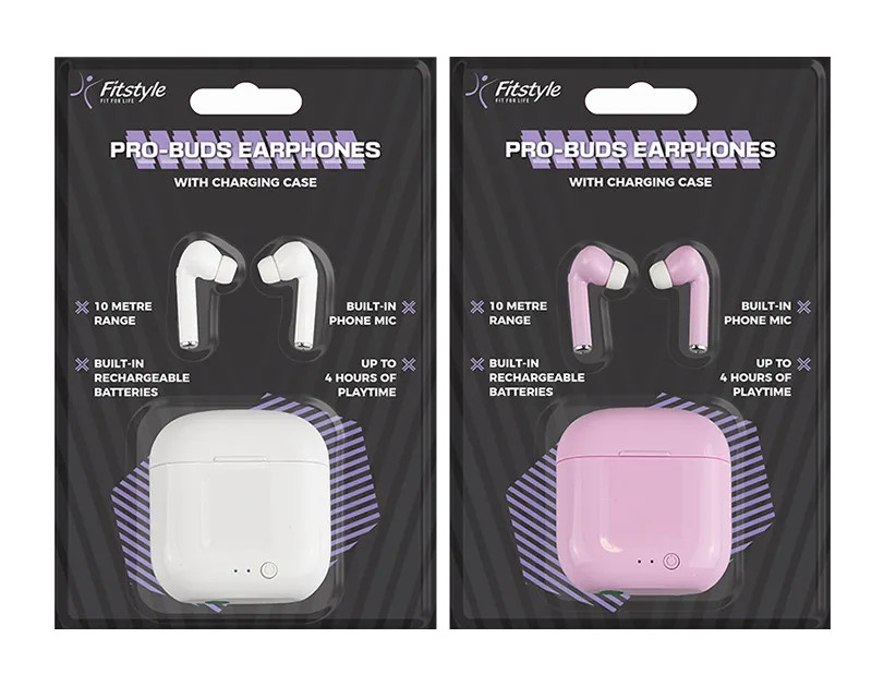 The ergonomic design means that the earphones fit the ears without falling out when in use. Once charged (Approx 2 hours) the earbuds will last 3-4 hours. The earbuds fit securely within a magnetic charging case that features an ON/OFF button and a light indicator.