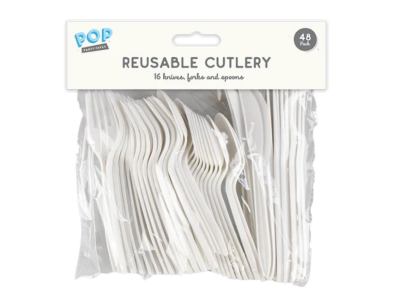 Each pack contains 48 cutlery pieces, including 16 knives, 16 forks and 16 spoons.