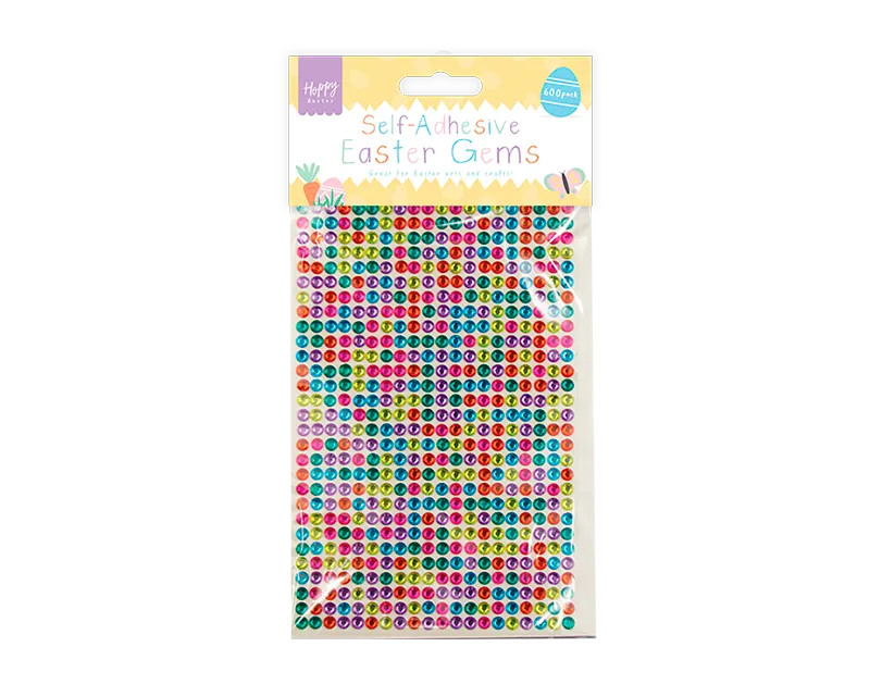 Each pack comes with 600 multicoloured gems, each gem is self-adhesive and can be placed on a variety of products such as cards, easter bonnets and much more.