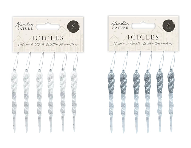 These Silver & White Acrylic Glitter Icicles are 12cm in length and would look great on any style of Christmas tree.