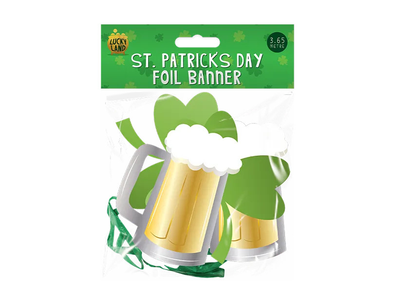 This impressive foil banner is perfect for St Patrick's Day. The banner measures 3.65m and is supplied with 12 pieces of card and a satin ribbon to hang.