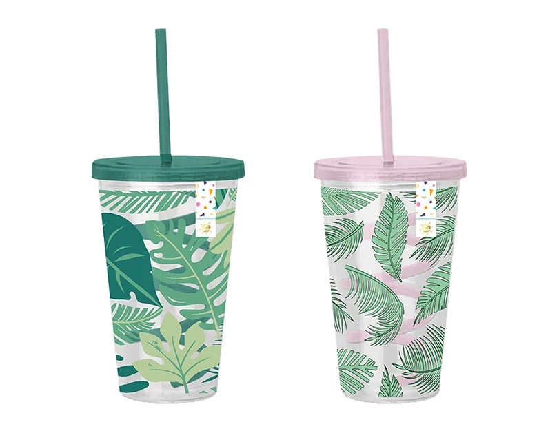 Each cup measures 15cm in height and is complete with an internal spiral straw and a screw-off lid.