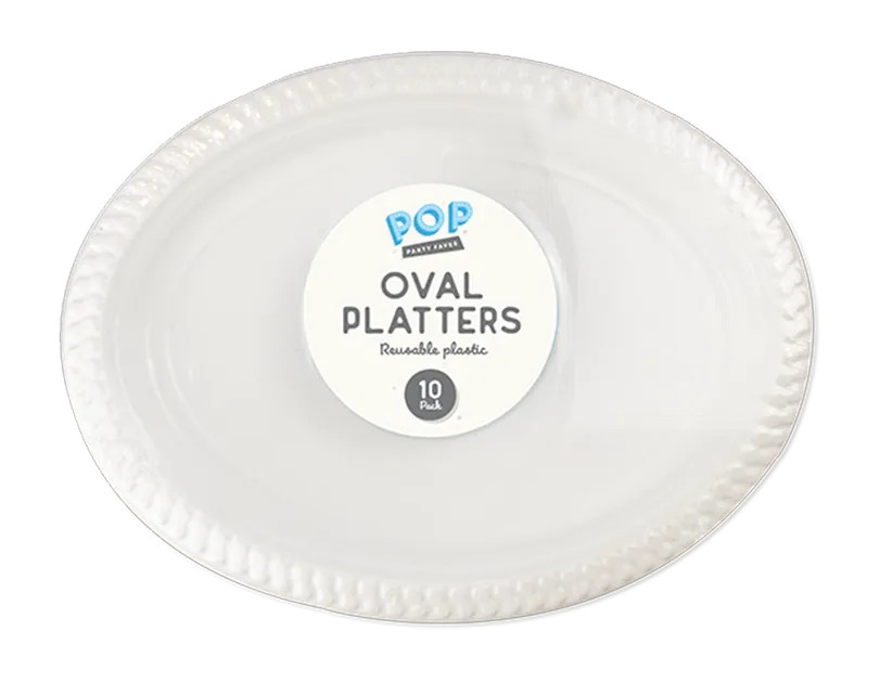 This pack of White Plastic Oval Platters contains ten individual platters that each measure 20cm x 26.2cm.